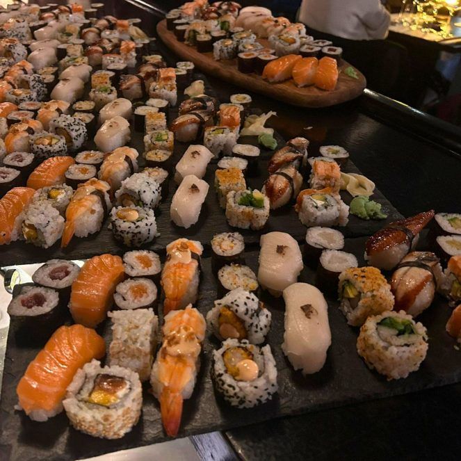 Cata de 15 piezas de sushi: 5uramakis, 5 makis y 5 sorpresas de diferentes sabores (atún, salmón, langostino, pez mantequilla y aguacate). Cada pareja irá marinado de un vino diferente.