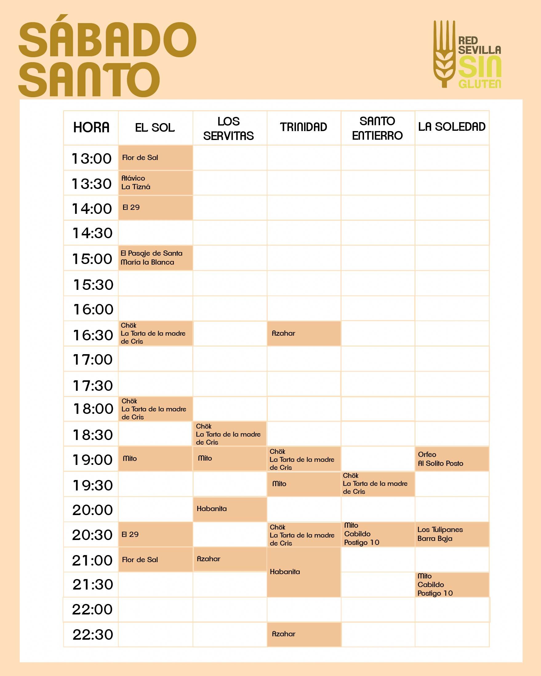 En este Sábado Santo sin gluten, desde la Red Sevilla Sin Gluten (RSSG) te invitamos a regalarte un momento de respiro entre paso y paso, entre saetas y silencios. Mientras las hermandades caminan entre la multitud y las miradas se llenan de veneración, tú puedes encontrar unos minutos de descanso y sabor en cualquiera de los establecimientos adheridos a la RSSG. Lugares donde la tradición y la seguridad alimentaria se dan la mano para que nadie quede fuera de esta vivencia.