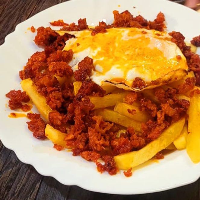 Salado: Albondigón Holandés con guarnición de patatas fritas.