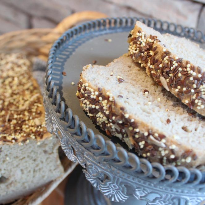 Pan artesano de harina de Teff, un cereal alto en fibra y rico en hierro y calcio. Ideal para el desayuno diario. Formato hogaza para cortar en rebanadas.